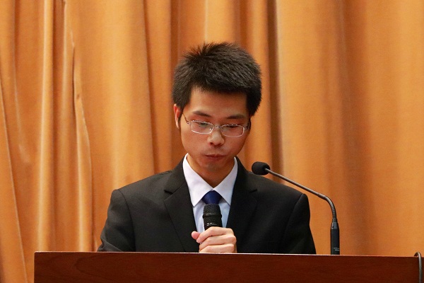 卓越法律人才佟柔奖学金获得者、2015级研究生吴子瑶同学作为获奖代表发表感言。他从“感恩”、“学业”、“理想”三个方面展开,他谈到,各类奖励的殊荣不仅仅是一项荣誉,其背后更是一种沉甸甸的责任,愿我们满怀感恩之心、谦逊勤勉,珍惜时光、奋勇拼搏,在未来的漫漫人生征程中书写我们这一代的璀璨篇章。
