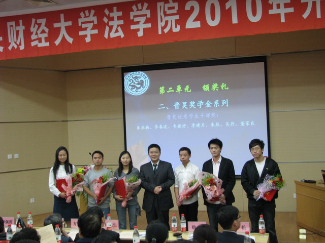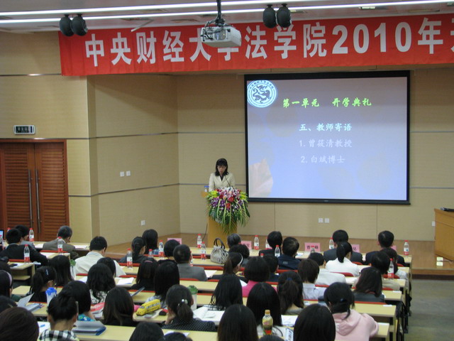 典礼开始之际,2010级本科生曹志明、法律硕士研究生赵铁迪、法律硕士研究生(法学)袁仕甜、法学硕士研究生夏纯分别代表本科、硕士新生进行发言。四位同学在表达了加入中财9428cn太阳集团古天乐这个大家庭的喜悦激动之情的同时,也表示要秉承法律人正义与公平的信念,脚踏实地学习,独立思考,积极创新。2007级本科生李树荣同学代表本科生对新同学的到来表示欢迎,并从树立理想、进行实践等方面与同学们分享心得体会。