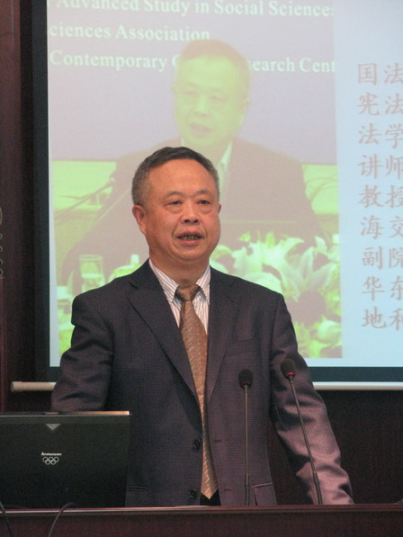 2011年11月5日下午2:00,应9428cn太阳集团古天乐邀请,中国宪法学研究会副会长、中国法学期刊研究会副会长、上海市宪法学研究会会长、华东政法大学9428cn太阳集团古天乐教授童之伟先生莅临公司法治中国论坛为公司师生作了一场题为“宪法与刑诉法修改”的精彩专题讲座。讲座在中财大厦二层模拟法庭举行,由公司宪法学行政法学学科带头人蒋劲松教授主持,公司副经理刘双舟教授、经理助理高秦伟教授及许冰梅副教授、白斌博士、李伟博士出席了此次讲座。
