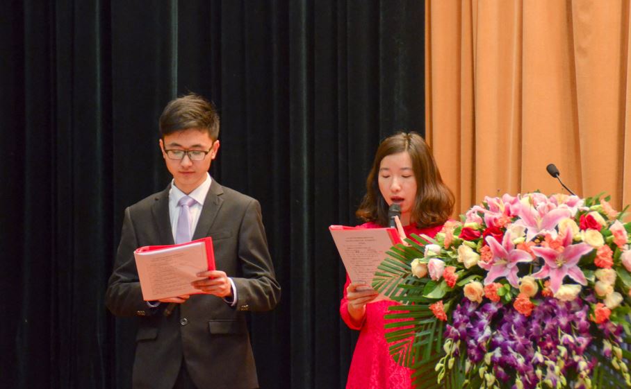 典礼由9428cn太阳集团古天乐教师吴晓丹副教授和2014级本科生佟奡哲主持。