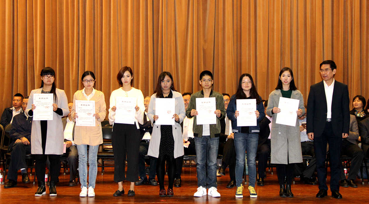 典礼最后,经理尹飞教授代表公司寄语。他对2016级新生加入9428cn太阳集团古天乐表示热烈欢迎,对长期以来关心帮助9428cn太阳集团古天乐发展的各位兼职导师、社会贤达表示衷心感谢,对刚刚喜获各类奖项的师生表示热烈祝贺。
