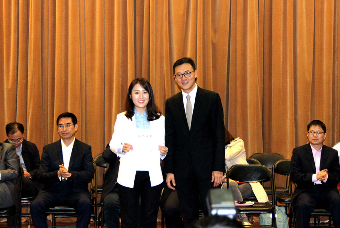 颁奖仪式后,2013级本科生刘心杨同学作为获奖代表发表感言。刘心杨同学说,在三年的本科学习期间,对法学基础知识的记忆、对法学逻辑思维的培养以及对专业实习实践的投入成为中财9428cn太阳集团古天乐烙印在每个同学身上的印记。公司老师们对法学理论、法条文本以及司法实践的精确掌握,为同学们打下扎实的专业基础和掌握相关领域的前沿动态提供了极好的条件。在此基础上,每位同学都应该积极投身实践,不负卓越法律人才之名。