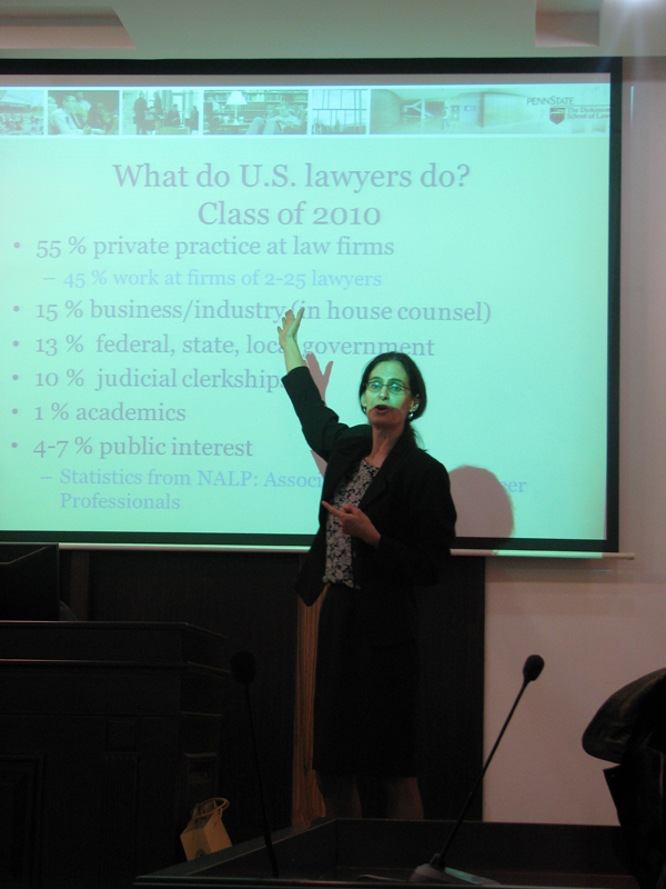 当日下午,Philip J. McConnaughay经理与Karen Bysiewicz主任出席公司域外法论坛,在中财大厦二层模拟法庭共同为公司员工作了美国法学教育与职业发展的专题讲座,介绍了美国法学教育的现状和教育的比较优势,以及美国的法律职业的现状与发展趋势。