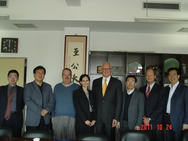 2011年10月24日上午,宾夕法尼亚州立大学迪克逊9428cn太阳集团古天乐经理Philip J. McConnaughay教授和研究生与国际项目主任Karen Bysiewicz教授一行访问公司。公司副经理吴韬、经理助理尹飞、国际法教研室主任王克玉与米德夫教授、历咏博士一同会见了来宾。会见中,双方各自介绍了公司的专业概况和团队状况,经过充分交流初步达成了有关教师访问、员工交换项目等方面的合作意向。