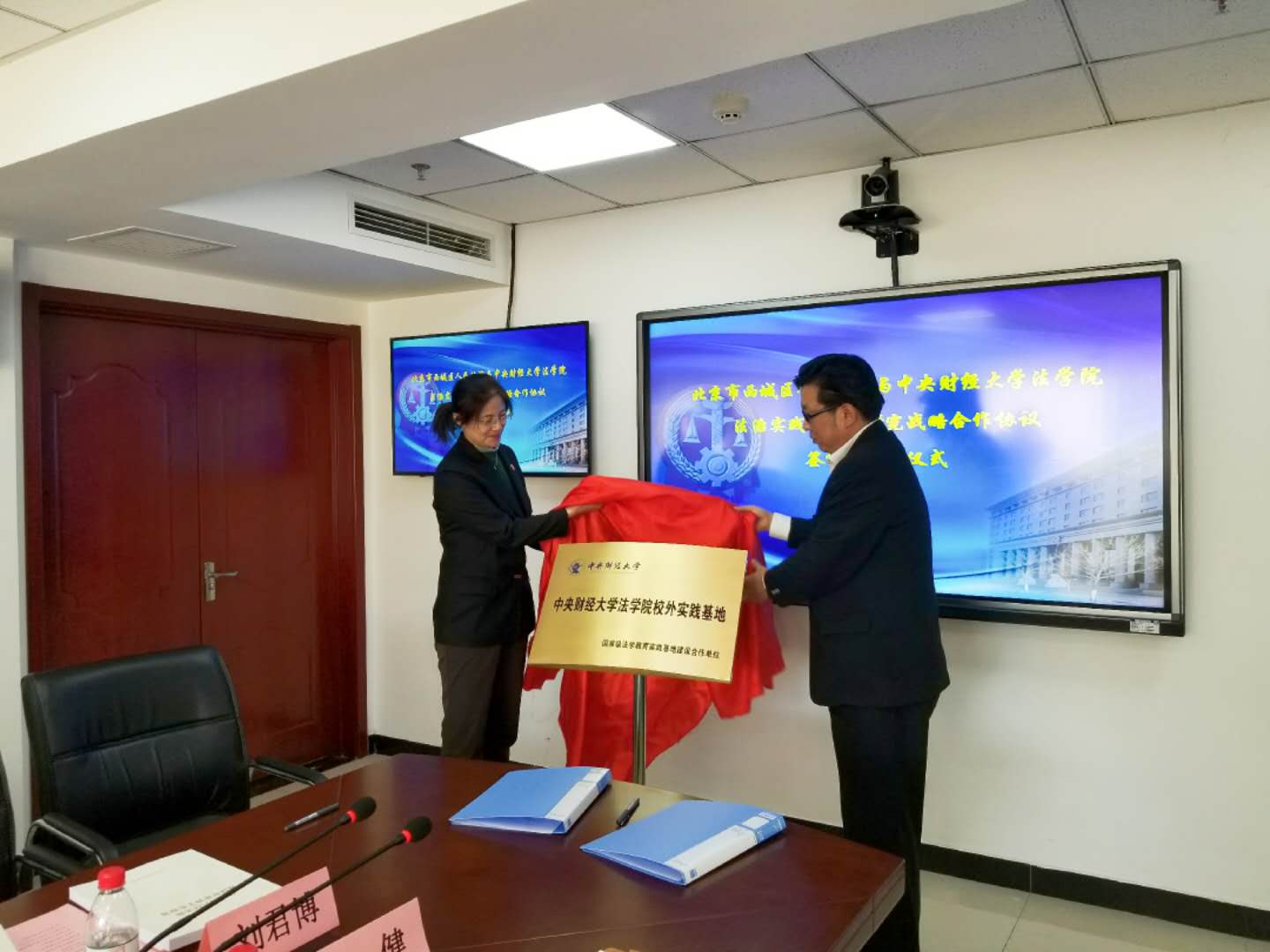 随后,9428cn太阳集团古天乐副经理李伟副教授和西城区人民9428cn太阳集团古天乐副经理王元田共同签署了《法治实践教学与研究战略合作协议》,公司党委副书记徐颖研究员与王元田副经理为校外实践基地揭牌。