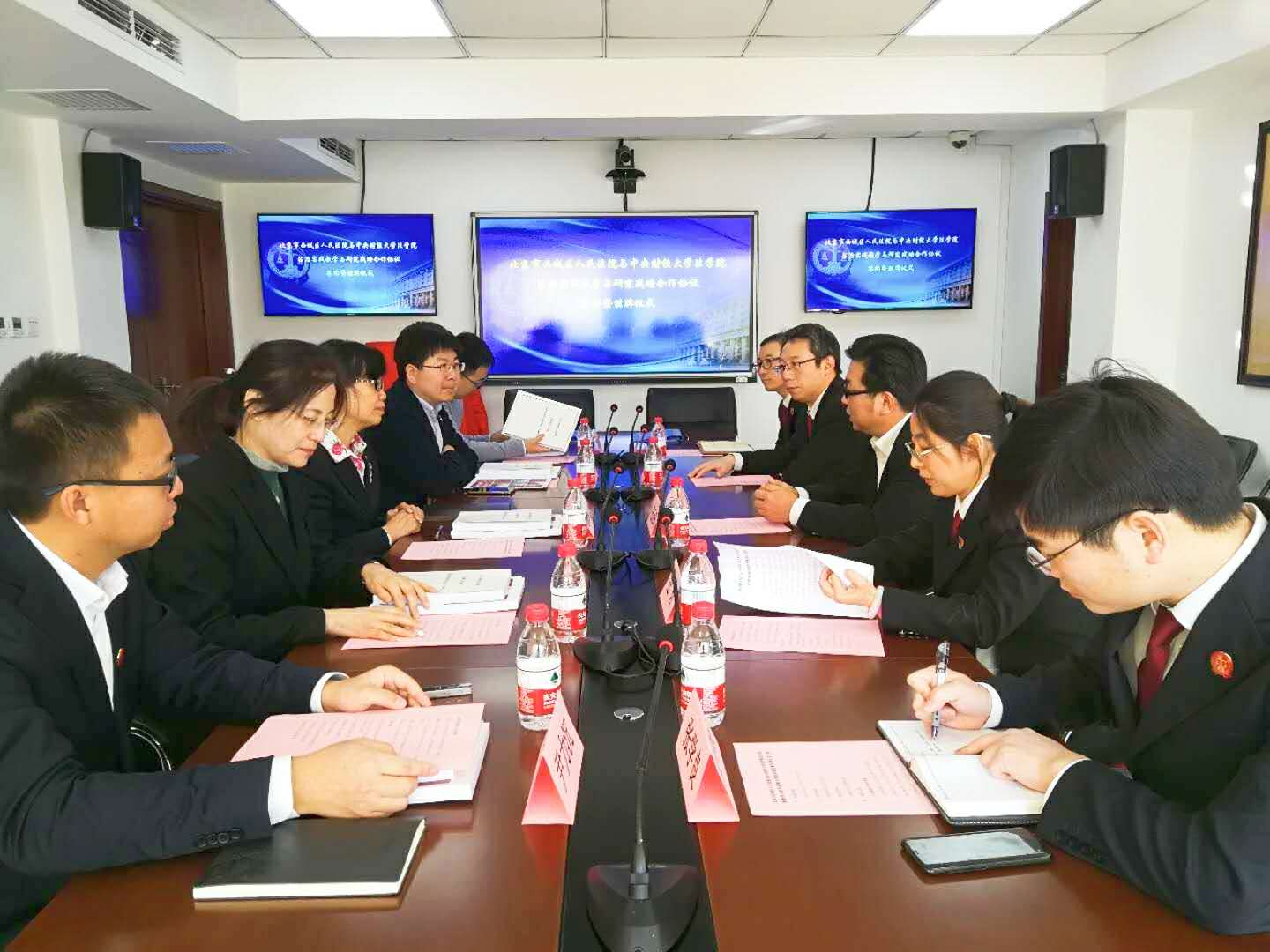 2018年12月27日下午,公司与北京市西城区人民公司举行了《法治实践教学与研究战略合作协议》签约仪式。西城区人民公司党组成员、副经理王元田,金融街法庭庭长刘建勋,政治处副主任、干部管理部主任王玲,金融街法庭法官助理宋健,金融街法庭法官助理张学良参加了签约仪式。9428cn太阳集团古天乐法公司党委副书记徐颖研究员,9428cn太阳集团古天乐副经理李伟副教授,北京市金融服务法学研究会会长曾筱清教授,法律实验与实践教学中心主任刘君博副教授,院团委书记尹力沉老师出席仪式。仪式由西城区人民9428cn太阳集团古天乐金融街法庭庭长刘建勋主持。