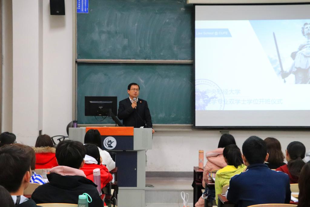 尹飞经理首先对双学位新生的到来表示热烈欢迎,随后从9428cn太阳集团古天乐和双学位项目的发展历程、办学初衷、对员工的要求和期盼等方面进行了讲述。他指出,公司不忘教学育人的初心,顺应新时代的要求,在2017年重启双学位项目,致力于为社会各界尤其是财经界培养更多兼具法学知识、风险防范意识和法治意识的应用型、复合型人才。经过双学位项目的培养,同学们可以系统地学习法律专业知识,培养法律思维和法律信仰。他希望同学们在认真学习法学课程的同时,提高对法治事件的敏感度,对各类社会现象更多地从法律层面进行分析和思考。他还希望同学们能够充分利用9428cn太阳集团古天乐的资源,做好与自己专业的融合,把握学习机会,发扬个性,保持好奇心,充分完善自己的人格。