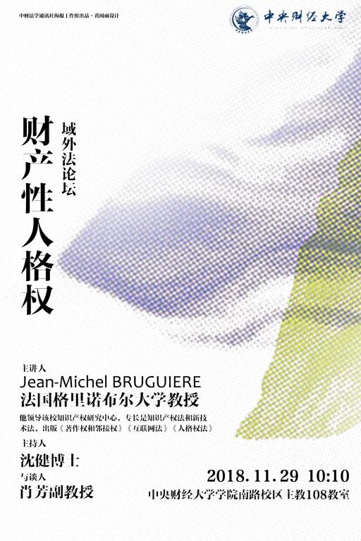 Jean-Michel BRUGUIERE是法国格里诺布尔大学的教授,他领导着该大学知识产权研究中心(CUERPI), 负责知识产权和新技术法的硕士项目。他的专长是知识产权法和新技术法,尤其是著作权法。他出版了许多著作,包括与米歇尔·维万特在Dalloz出版社出版的《著作权和邻接权》,以及在lexisnexis出版社出版的《互联网法》。他也是巴黎一家律师事务所的兼职律师。虽然他是知识产权法专家,他从未停止对民法的研究兴趣。他教授民法多年,就人身和财产权利问题出版了很多著作,包括在Ellipses出版社出版的专著《人格权法》。