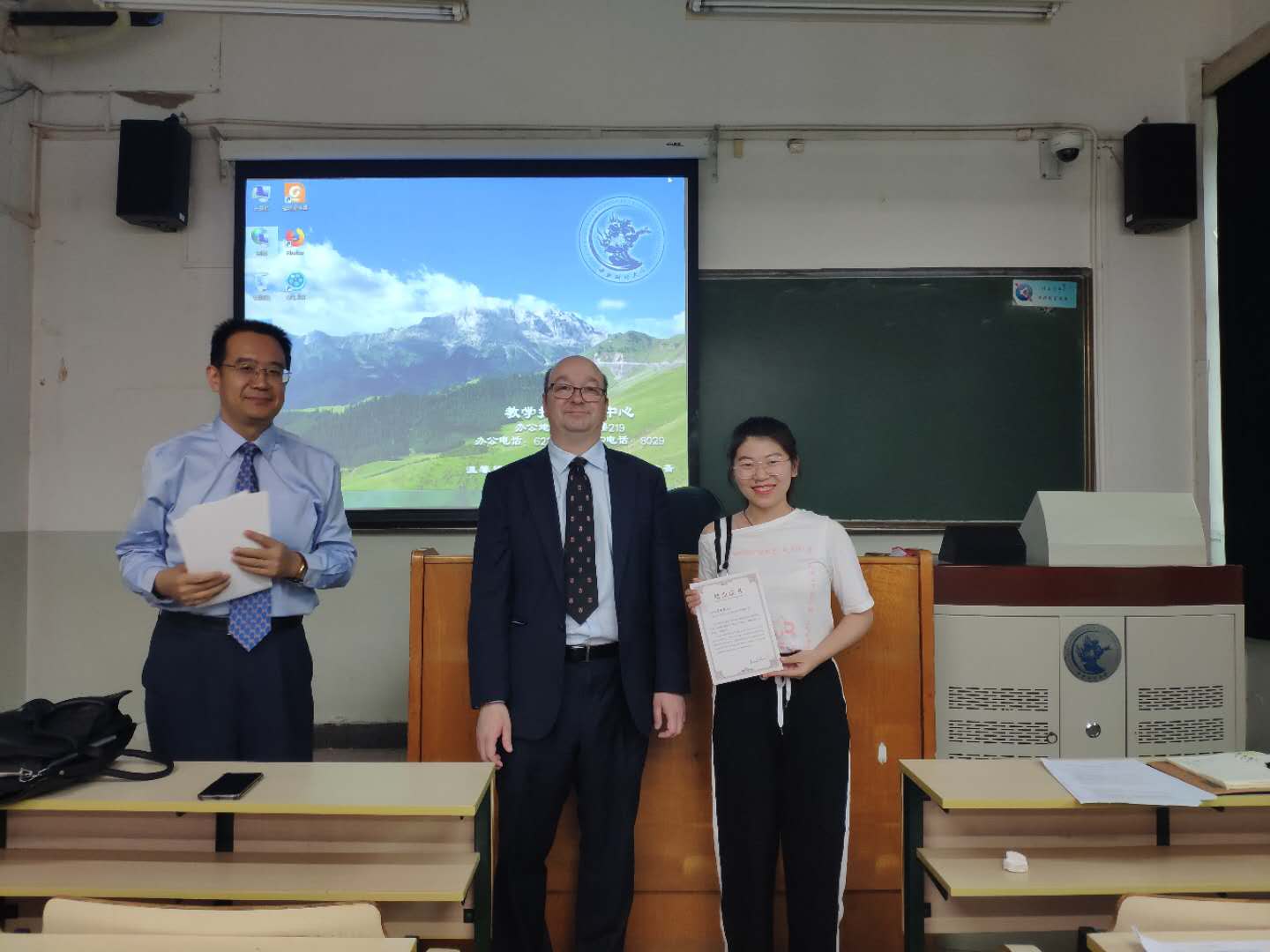 结课仪式上,副经理王克玉教授与Richard教授一起为员工颁发结业证书,并对员工给予鼓励与期许。仪式结束后,副经理王克玉教授与Richard教授和同学进行合影留念。