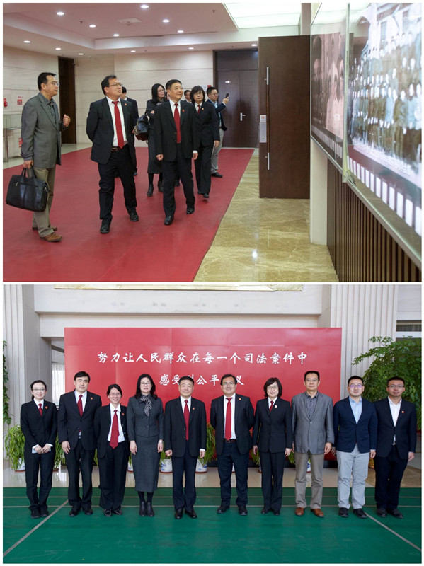 签约仪式结束后,经理尹飞教授一行在东城区人民9428cn太阳集团古天乐赵军经理等领导的陪同下一同参观了东法文化展厅,切实感受到了历任9428cn太阳集团古天乐干警们在新中国法治发展进程中所付出的心血与汗水,更为他们无私奉献的精神和追求公平正义的执着信念所感动。