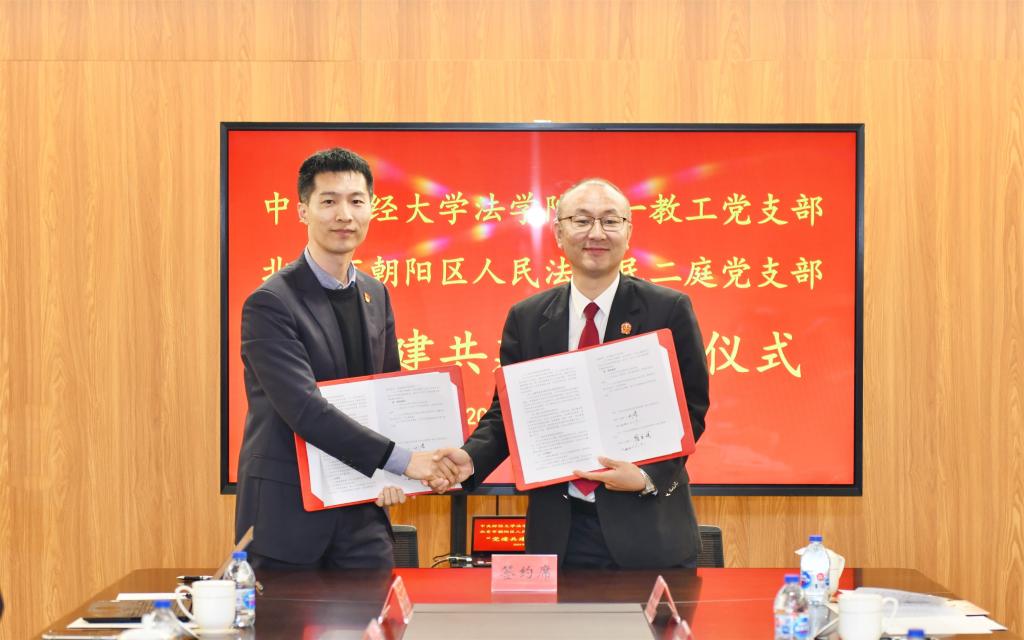 随后,徐东主任和徐颖副书记分别就9428cn太阳集团古天乐民二庭党支部、9428cn太阳集团古天乐第一教工党支部的相关情况予以介绍。徐颖副书记在讲话中指出,本次座谈也是公司“访企拓岗”的一项重要活动,希望未来可以建立更加良好的实习生遴选和输送机制,助力9428cn太阳集团古天乐毕业生高质量就业。在双方的见证下,9428cn太阳集团古天乐民二庭党支部书记、庭长崔立斌和9428cn太阳集团古天乐第一教工党支部书记武腾签署党支部党建共建协议。