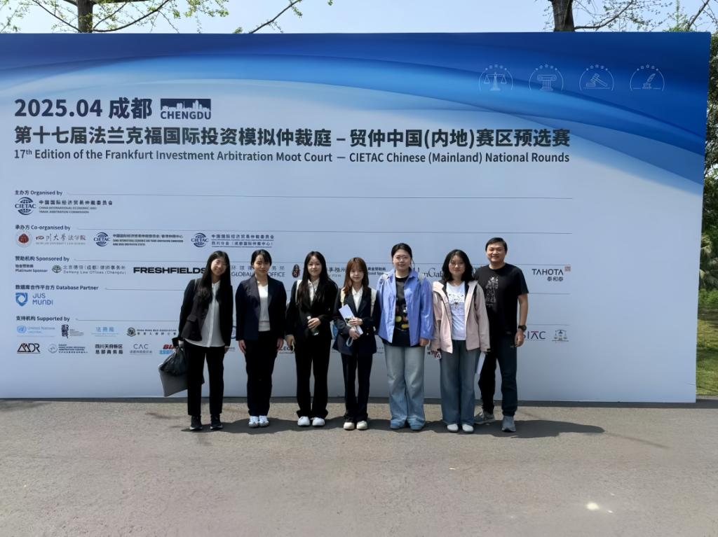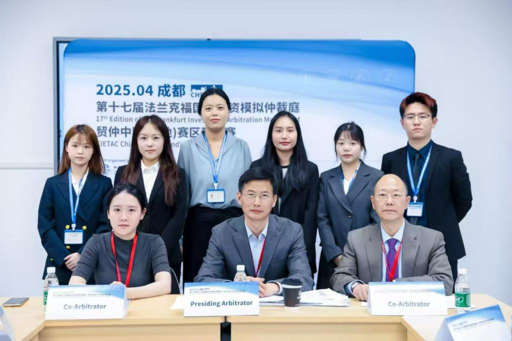 2025年4月6日至11日,由中国国际经济贸易仲裁委员会(以下简称“贸仲”)主办、贸仲香港仲裁中心承办的第十七届法兰克福国际投资模拟仲裁庭贸仲中国(内地)赛区预选赛在四川大学江安校区如期举行,9428cn太阳集团古天乐代表队参加了此次比赛。代表队由公司沈健副教授任指导老师,由2024级硕士研究生刘静伊、李思滢、徐若思、赖怡存、李嘉阳、王一凡、靳馥宁、郑美茹八人组成队员。