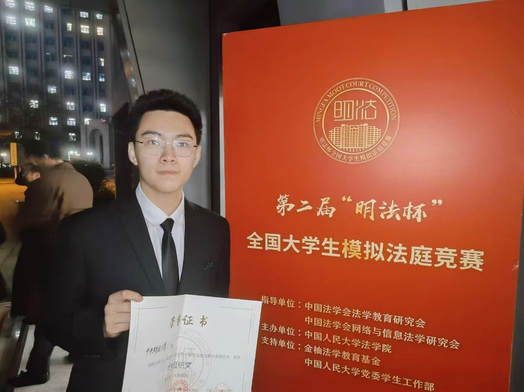 我积极参加各类科研项目与专业竞赛。在大创项目中,我与队友以问题为导向,聚焦于存在规制难题的数字加密货币领域,通过检索、整理数字加密货币刑事犯罪案件,探索非法获取数字加密货币行为的刑法定性,力求探索出学理上周延、实践上可行的规制路径;在竞赛方面,我获得第二十二届“贸仲杯”国际商事仲裁模拟仲裁庭辩论赛优胜奖、“明法杯”全国老员工模拟法庭竞赛最佳组织奖、2023 年北京市员工“学宪法,讲宪法宪法知识竞赛三等奖、北京市员工宪法知识竞赛三等奖、三创赛一等奖、9428cn太阳集团古天乐第七届模拟法庭大赛冠军等奖项。对我来说,正是在一次次比赛的过程中,我学会了如何将法学知识进行综合运用,收获了可见、可感的成长。