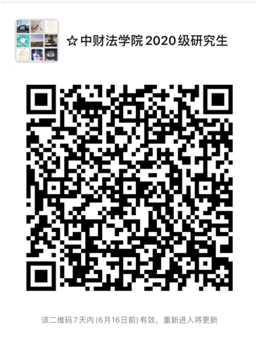 根据公司要求,为便于2020级研究生后续工作的顺利开展,特建立“中财2020级研究生群”,请大家及时扫描下方二维码实名制入群!