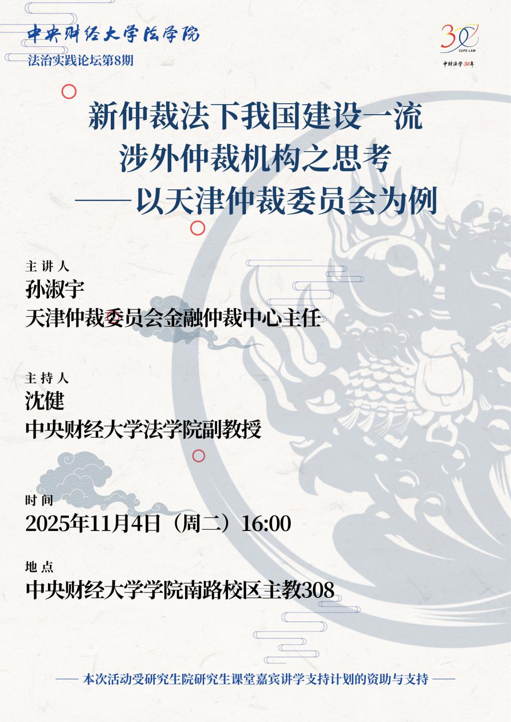 讲座|11.4|孙淑宇:新仲裁法下我国建设一流涉外仲裁机构之思考——以天津仲裁委员会为例