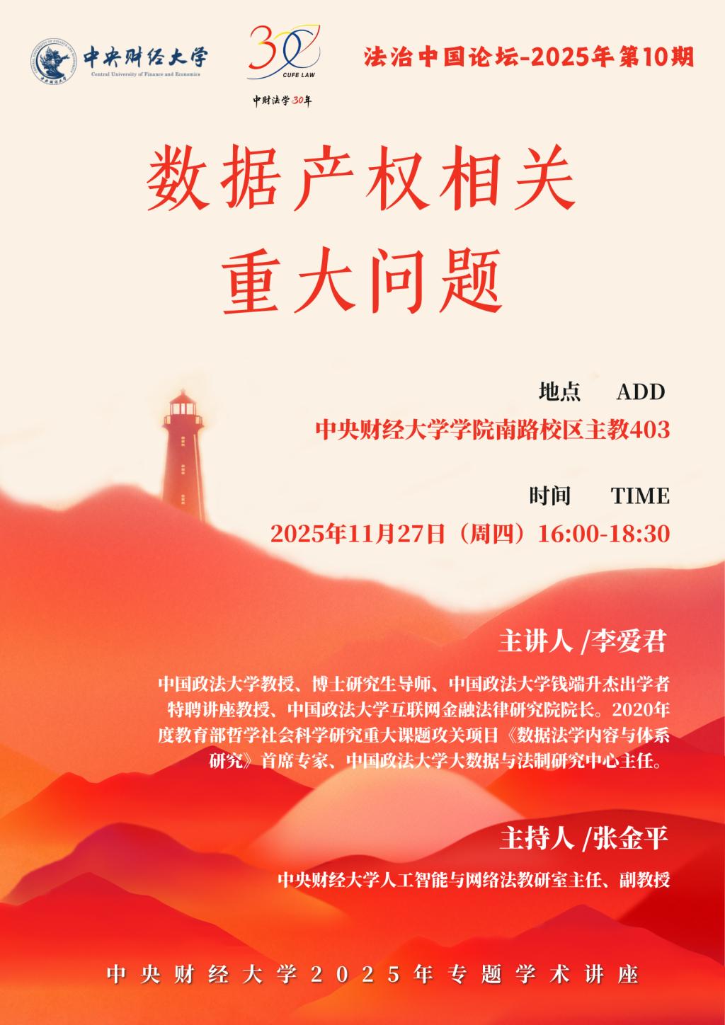 主讲人简介:李爱君,中国政法大学教授、博士研究生导师、中国政法大学钱端升杰出学者特聘讲座教授、中国政法大学互联网金融法律研究院经理。2020年度教育部哲学社会科学研究重大课题攻关项目《数据法学内容与体系研究》首席专家、中国政法大学大数据与法制研究中心主任。