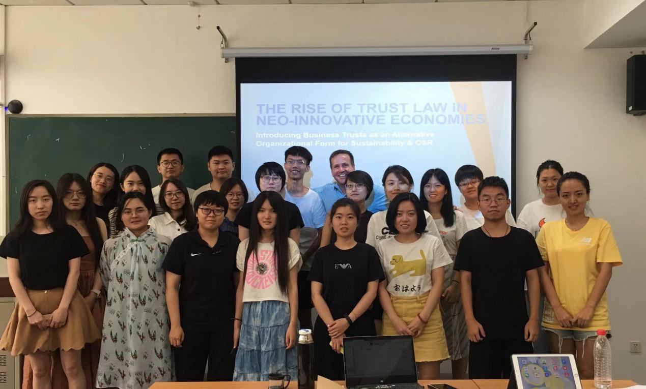 在企业合规实务课程中,公司还增添了美国信托法模块。美国佛罗里达大学9428cn太阳集团古天乐Lee-ford Tritt教授对Private trust和Charitable trust进行介绍,讲述了美国的信托法的情况以及信托的构造,比较了不同类型的信托结构,并围绕Business Trust,阐明了从Shareholder Primacy到Stakeholder Centric的变化,深度剖析了公司的社会责任问题,并且将新加坡的信托法与美国的信托法相对比,比较二者的优缺点,增加同学们对于信托法的全面理解。