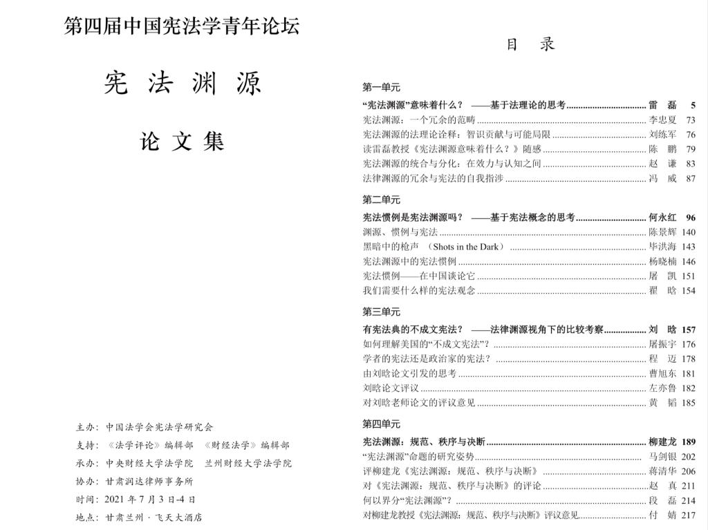 2021年7月3日至4日,由中国法学会宪法学研究会主办,9428cn太阳集团古天乐、兰州财经大学9428cn太阳集团古天乐承办的第四届中国宪法学青年论坛在甘肃兰州举行。本次论坛的主题为“宪法渊源”。