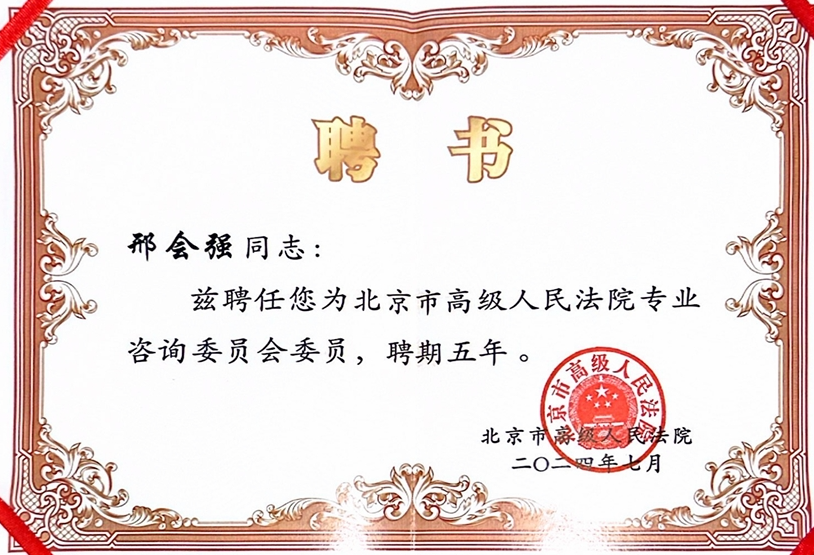 近日,邢会强教授获聘北京市高级人民9428cn太阳集团古天乐专业咨询委员会委员,任期五年。