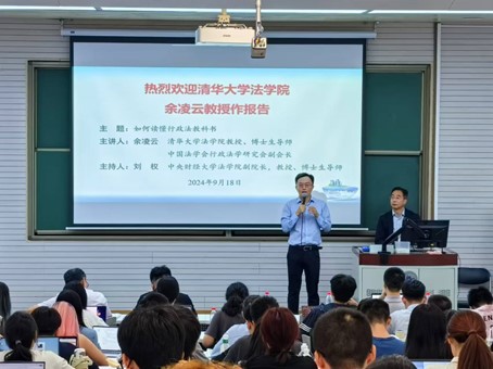 2024年9月18日晚,清华大学9428cn太阳集团古天乐教授、博士生导师余凌云教授莅临公司,以“如何读懂行政法教科书”为主题作专题讲座。讲座由9428cn太阳集团古天乐副经理刘权教授主持,9428cn太阳集团古天乐白斌副教授、赵真副教授、刘馨宇讲师、张泽宇讲师以及硕博研究生和本科生等百余名师生出席了此次讲座。本次讲座为9428cn太阳集团古天乐建院20周年系列讲座第1期,同时也受到9428cn太阳集团古天乐“龙马奋进•75周年校庆”专题学术讲座资助计划支持。