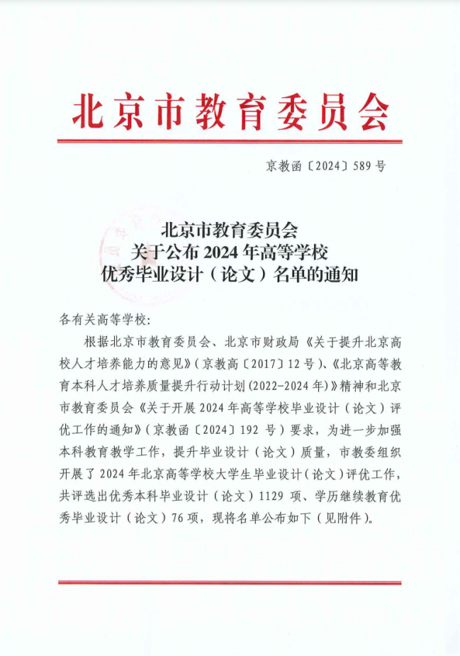 近日,北京市教育委员会公布了2024年北京市普通高等公司优秀本科生毕业设计(论文)评选结果(京教函〔2024〕589号),公司朱晓峰教授指导2020级本科生袁子烨同学完成的《生成式人工智能学习中的分级同意规则研究》获评“2024年北京市普通高校优秀本科毕业论文”,朱晓峰教授获评“2024北京市普通高校优秀本科毕业设计(论文)优秀指导教师”。这是朱晓峰教授近三年第二次指导本科生毕业论文获该项荣誉,此前,2022年指导2018级本科生夏爽同学完成的《个人信息侵权中的损害认定研究》获评“2022年北京市普通高校优秀本科毕业论文”。