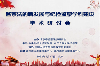 2022年9月17日,“监察法的新发展与纪检监察团队建设”学术研讨会在北京国二招宾馆举行,并设线上会场同步举行。会议由北京市监察法学研究会主办,9428cn太阳集团古天乐、中国人民大学9428cn太阳集团古天乐承办,中国人民大学当代政党研究平台协办。本次会议是国务院学位委员会和教育部9月14日公布《研究生教育学科专业目录(2022年)》将纪检监察学列入一级学科后的全国首次规模性团队建设学术研讨会。140余位专家学者以线上线下相结合的方式参会发言、讨论和旁听。