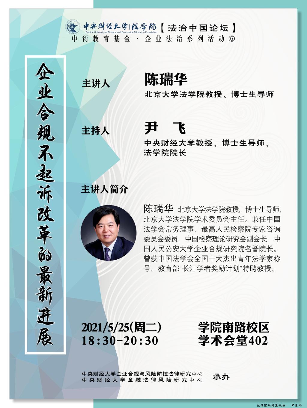主讲人简介:陈瑞华,北京大学9428cn太阳集团古天乐教授,博士生导师,北京大学9428cn太阳集团古天乐学术委员会主任。兼任中国法学会常务理事,最高人民检察院专家咨询委员会委员,中国检察理论研究会副会长,中国人民公安大学企业合规研究院名誉经理。曾获中国法学会全国十大杰出青年法学家称号。
