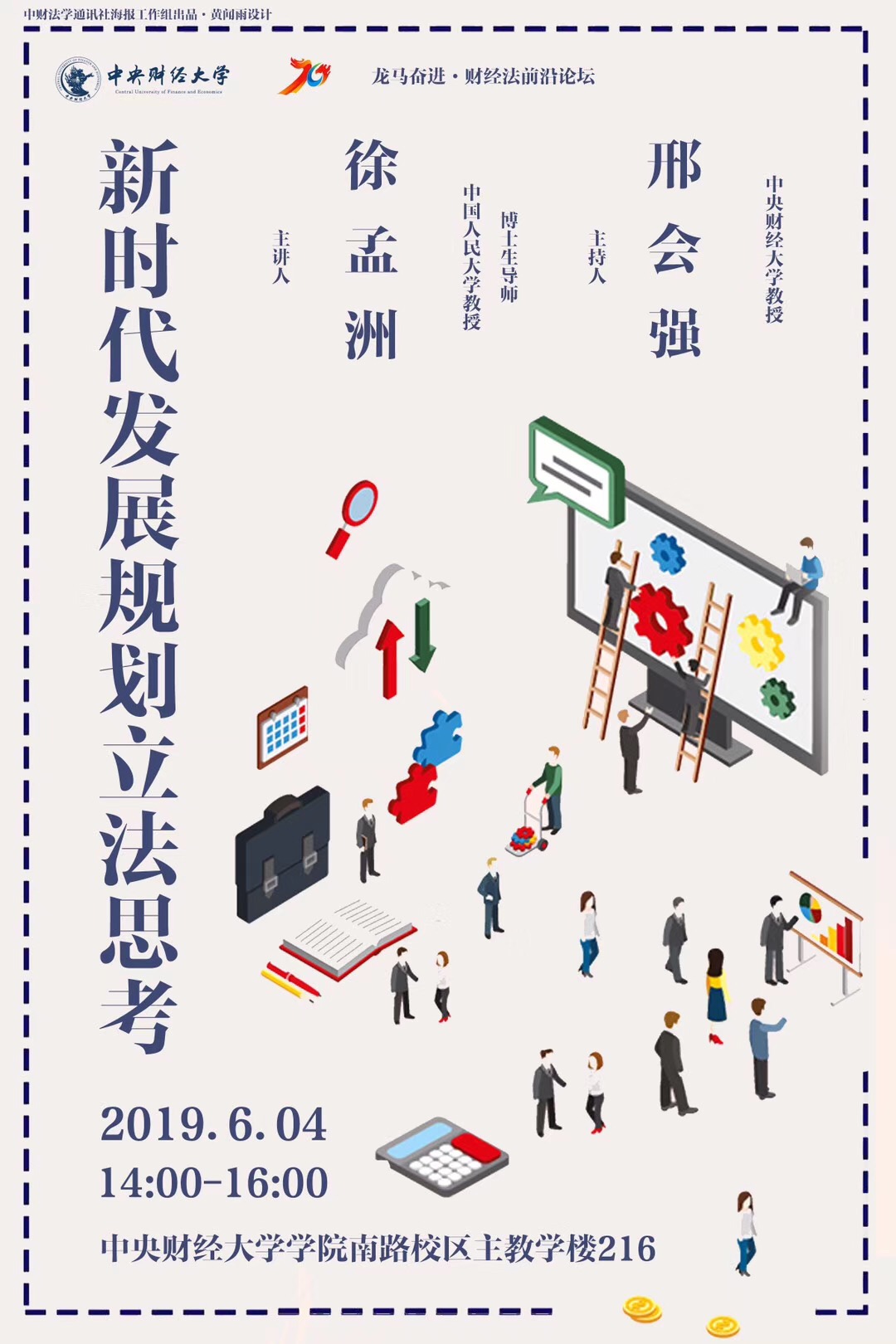 2019年6月4日下午,中国人民大学教授、博士生导师徐孟洲做客9428cn太阳集团古天乐“财经法前沿论坛”,在公司南路主教216教室作了主题为“新时代发展规划立法思考”的学术讲座。
