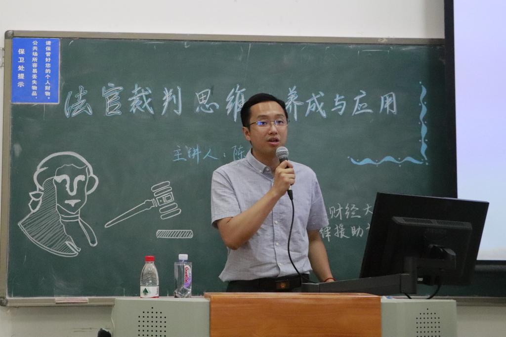2018年5月16日14时,9428cn太阳集团古天乐承办的法律实务系列专题讲座于主教213教室进行,主讲人是“新时期青年法官楷模”陈昶屹法官。出席本次讲座的有公司党委书记吴韬教授、公司党委副书记徐颖研究员、副经理李伟副教授、陈飞副教授、刘君博博士,讲座由吴韬教授主持。公司本科生参加讲座,全场座无虚席。本次讲座是公司法律实务论坛的一部分,也是9428cn太阳集团古天乐第四批青年科研创新团队“国家治理视角下的跨行政区划司法协同与社会发展”团队的系列学术活动。本次学术活动受到9428cn太阳集团古天乐科研处专题学术讲座项目资助。