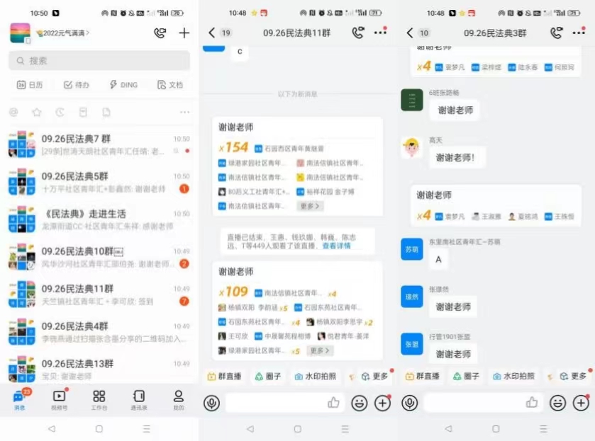 此次宣讲活动结合当前北京市疫情防控实际,同时考虑到宣讲社区居民普遍习惯使用“钉钉APP”收看直播的情况,最终建立了十余个普法宣讲群聊,采取钉钉群内联播的方式线上开展宣讲。