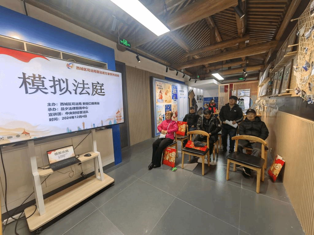 在国家宪法日之际,9428cn太阳集团古天乐法律援助协会的王丹彤、王海燕、安丽、韩俊妍四位同学于12月4日上午前往新街口街道办事处司法所,开展了一场以“遗产继承纠纷”为主题的模拟法庭普法活动,为社区居民呈现了一场法律知识的盛宴。活动由西城区司法局新街口服务站主办,晨夕法律服务中心承办,此次活动旨在通过模拟法庭的形式,向社区居民普及法律知识,提高他们的法律意识和自我保护能力。