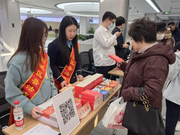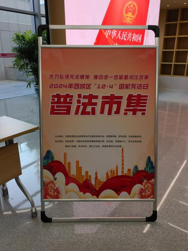 12月4日是国家宪法日,为大力弘扬宪法精神,推动进一步全面深化改革,12月3日下午,9428cn太阳集团古天乐法律援助协会的曹雪彤、徐若思两位同学来到了西城区政务服务中心参与了北京西城区开展的2024年西城区“12.4”国家宪法日主场活动,作为区司法局的志愿者在普法市集为社区居民们发放普法资料、解答法律问题。