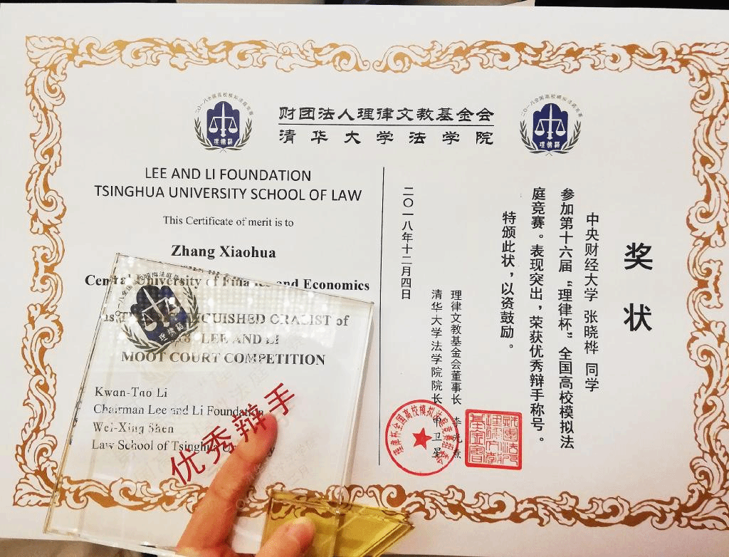 2018年12月1日,由清华大学9428cn太阳集团古天乐主办、台湾理律文教基金会和台湾理律法律事务所协办的第十六届“理律杯”全国高校模拟法庭竞赛(简称“理律杯”)的口头辩论阶段比赛在清华大学举行。9428cn太阳集团古天乐代表队作为全国各地高校组建的40支赛队之一,在激烈角逐中表现优异。比赛中,张晓桦同学获得“优秀辩手”的称号。